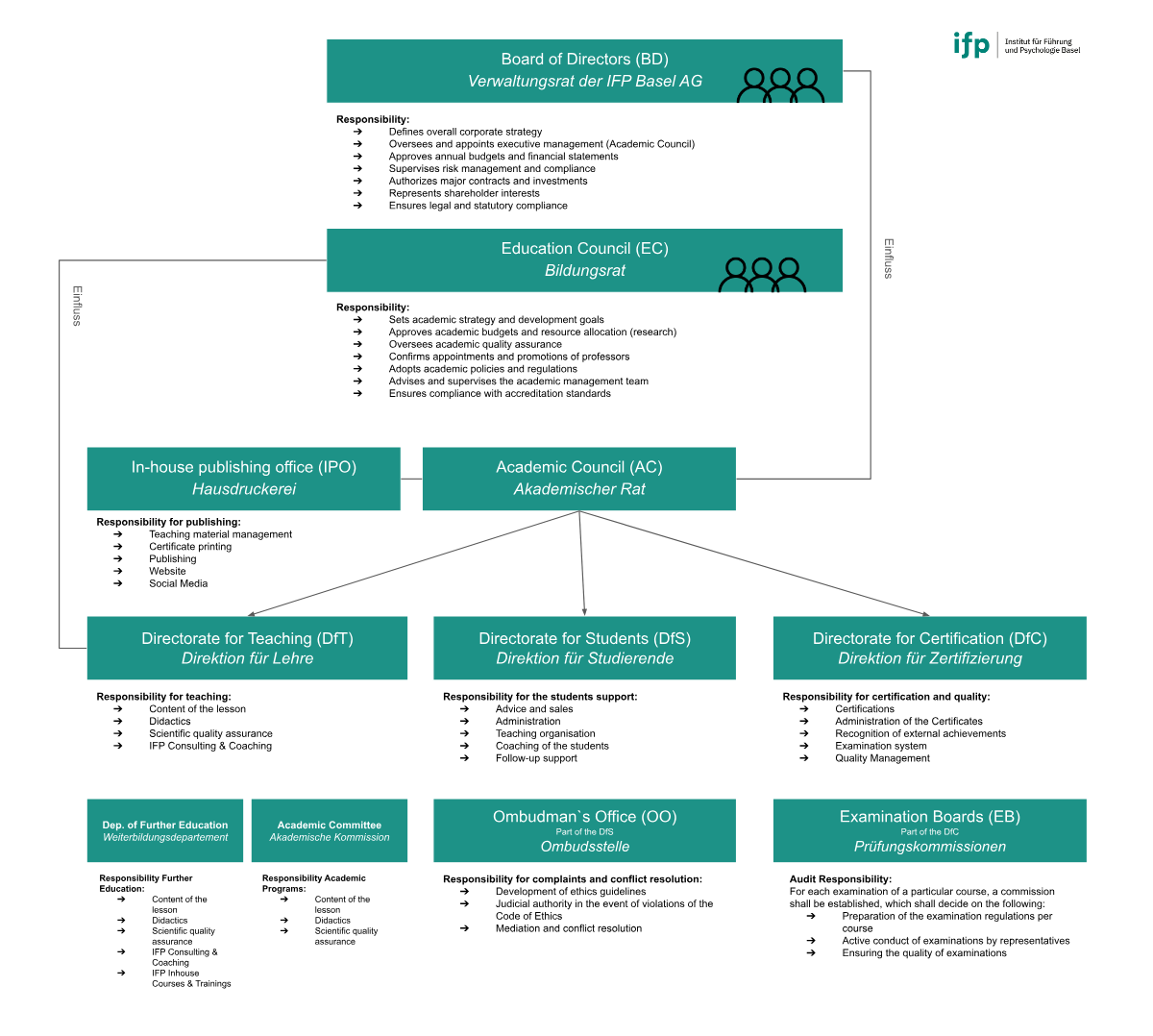 Das Institut für Führung und Psychologie Basel orientiert sich an international anerkannten Qualitäts- und Wirkungsstandards für Bildungsorganisationen und ist nach ISO 21001:18 zertifiziert – der weltweit gültigen Norm für Managementsysteme von Bildungsorganisationen.